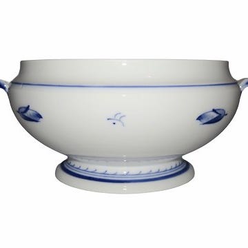 Bing & Grøndahl Jubilæumsstellet dekoreret med blå nelliker, saltkar.
