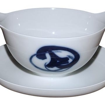 Bing & Grøndahl Hvid Koppel, sjælden sovseskål med træhank.