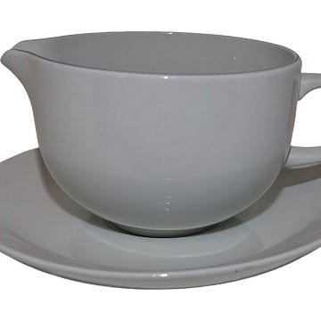 Aluminia Blåkant, sovseskål uden hank med låg og underfad.