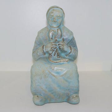 Stor Michael Andersen keramik figur, dame dekoreret i lyse farver.
