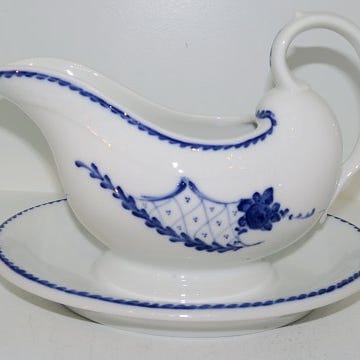 Royal Copenhagen Harpe med rokoko dekoration der passer godt sammen med Musselmalet eller Blå Blomst.
