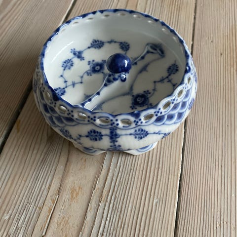 Royal Copenhagen Harpe med rokoko dekoration der passer godt sammen med Musselmalet eller Blå Blomst.