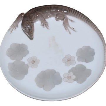 Royal Copenhagen Art Nouveau, skål med låg med sommerfugl.