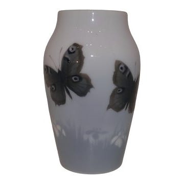 Royal Copenhagen Art Nouveau vase med agern og sommerfugl