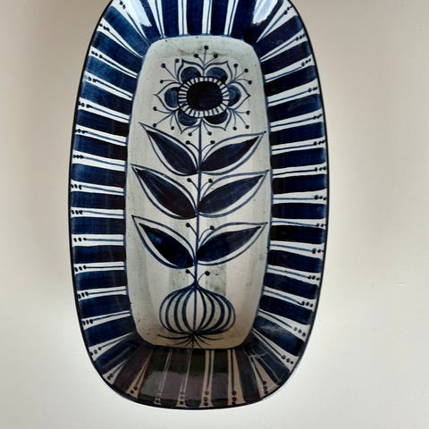 Aluminia Fajance Tenera, rundt smørbrædt med fantasifugl.
