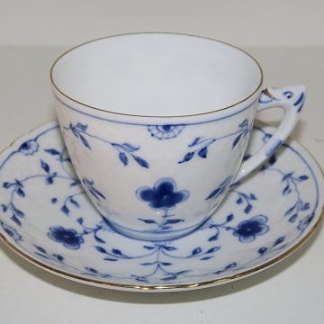Dekorationsnummer på koppen 107, underkop 108B og er ikke der originalt hører til, men passer fint i størrelsen.