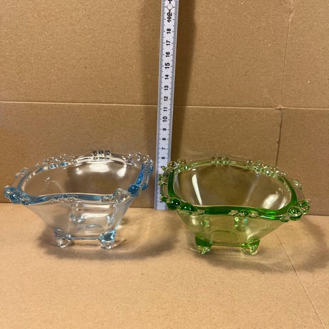 Glasbakke med sterlingsølv gallerikant og slebet glas.