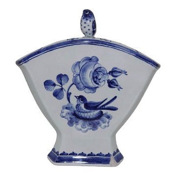 Brun Tranquebar Sjælden lågkrukke med blomster og fugl