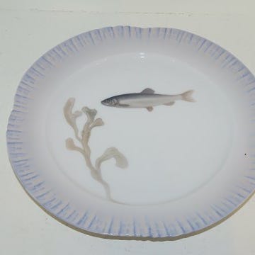 Royal Copenhagen Art Nouveau fisketallerken med to blå fi
