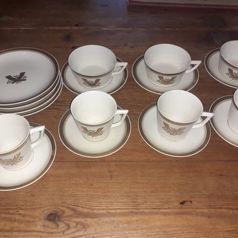 Royal Copenhagen Guldhorn stellet, tekop med underkop.