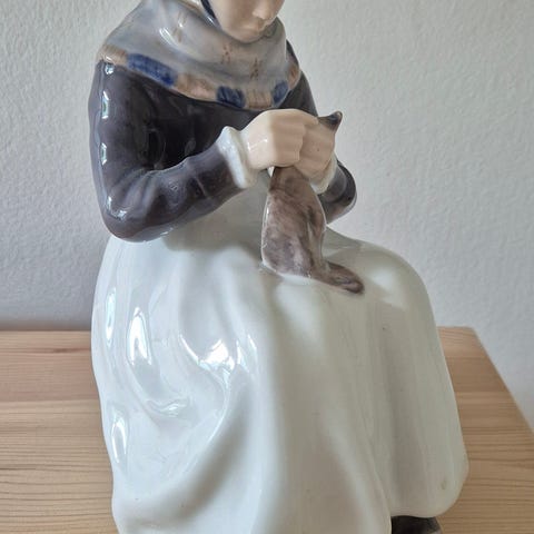 Royal Copenhagen figur, siddende Amagerpige.