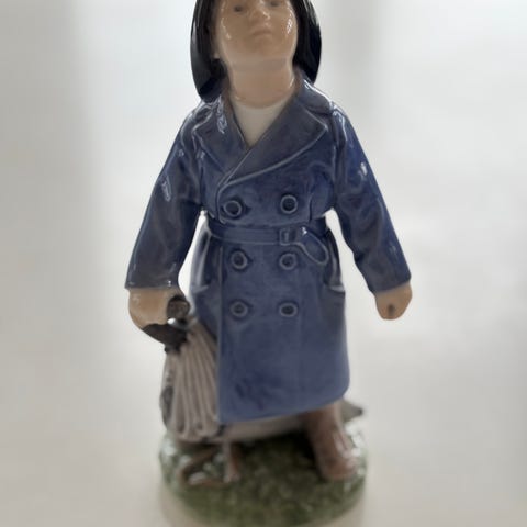 Royal Copenhagen Figur Dreng i regnfrakke med parably