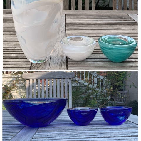 Vase og 2 lyslygte/små skåle, fra Kosta Boda.