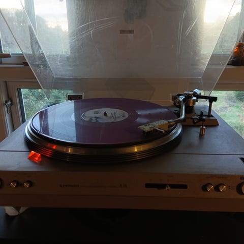 Den spiller fint men har nogle ting såsom et mærke på låget og kan nogle gange ikke stoppe med at køre rundt, måske en rens kan afhjælpe det
