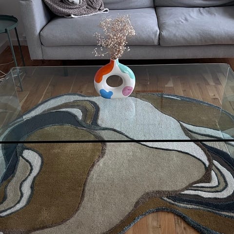 Massivt kirsebærtræ. Bordet har en glasplade øverst, der giver et moderne udseende. Egnet til brug i stuen som sofabord eller til dekorative formål.