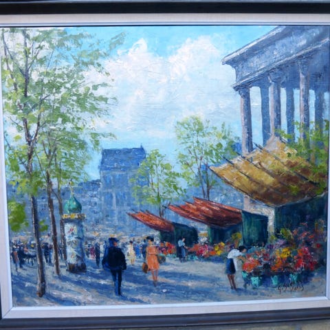 Oliemaleri, Gunnar Svensson, motiv: Landskab, stil: Modernisme, b: 90 h: 76, Oliemaleri fra Paris, malet af G. Svensson