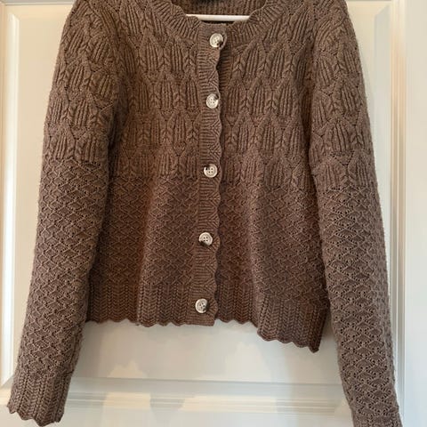 Lækker blød cardigan i ruskindslignende materiale som har lidt blazer look over sig