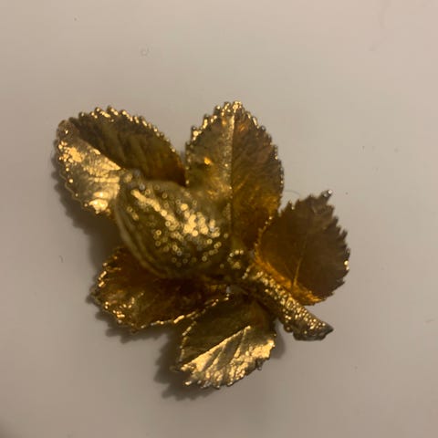Flot forgyldt rose " broche " fra Flora Danica. Har desværre ikke æsken mere.