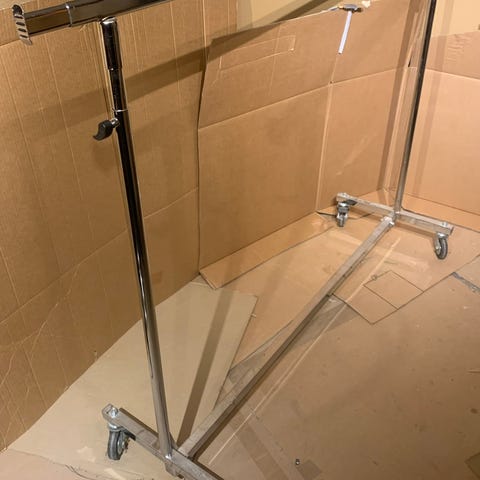 Sammenklappeligt tøjstativ i sort metal. Ideel til opbevaring af tøj i soveværelset eller garderoben. Let at flytte og opbevare, når det ikke er i brug. Passer til forskellige typer og størrelser af beklædningsgenstande.