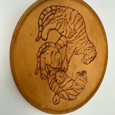 Vægrelief i lyst træ og messing