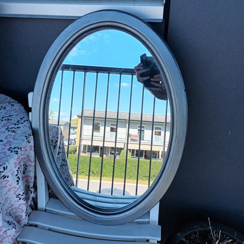 SMUKT ANTIKT FACETSLEBET SPEJL MED UDSKÆRINGER