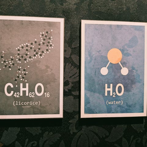 Billeder str. A5, Molekyle, motiv: Licorice og chocolate, Begge for 100,- kr. De er i pæn stand og lavet af massiv træ.