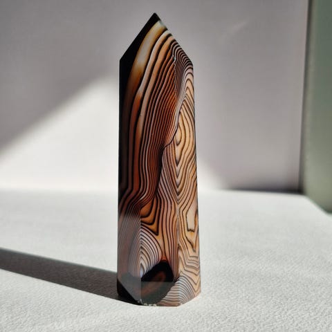Styrker dig i at stå i dit lys. Tårnet kan du holde i hånden når du har brug for energien fra krystallen. Det er fordelen ved tårnene. Jeg har flere og der er rabat ved køb af flere.