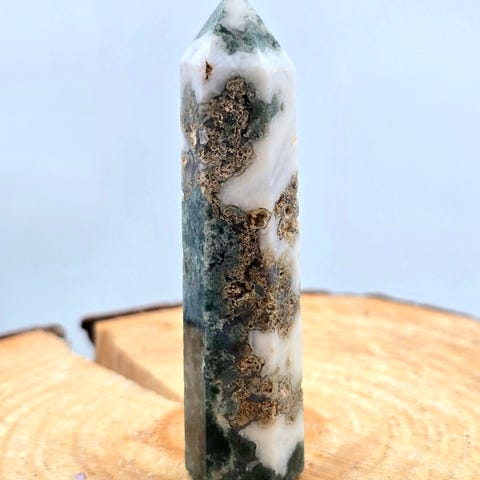 Mosagat fås i mange forskellige nuancer. Denne er meget ensartet. Den er ca 8 cm høj og Mosagat knytter sig tættere til naturen. Dyr og planter trives med Mosagat. Den giver vækst i forretninger og personlig udvikling.