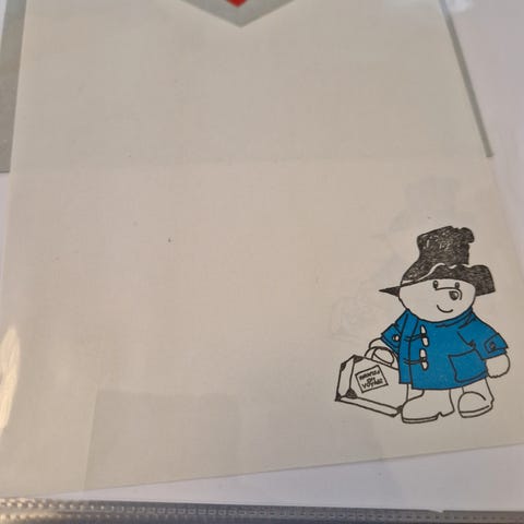 Brevpapir, Blok med guldtus, Helt ny/ubrugt blok med "brevpapir". Hvert ark har billedet på forsiden på den ene side og er hvidt på bagsiden.