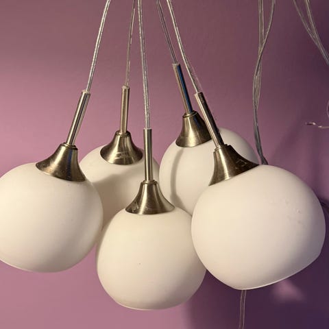 2 hvide lyngby pendler sælges med pærer. ( pærerne er helt nye) Fejler ingen ting. Ny pris 1500 kr inkl pærer. Sælges til 350 kr