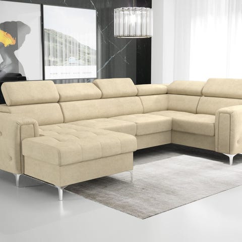ORIONIS Max 3-hjørnesofaen er en del af vores populære glamourkollektion, og den skiller sig ud med sin smukt dekorerede quiltede side, der tilføjer en unik stil til hele møblet.