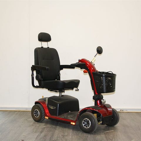 Brugt el-scooter med 4 hjul og komfortsæde. Sædet er udstyret med justerbare armlæn og nakkestøtte. Desuden er der montere en lille forkurv på, så du har plads til din bagage. Denne scooter er især perfekt til de korte ture ind til byen eller købmanden.