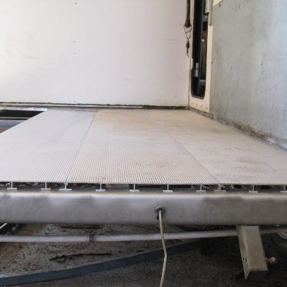 Komplet aluminium plankegulv til hestetrailere med gulvmål op til 165 × 310 cm. Til større trailere kan der bruges ekstra planker.