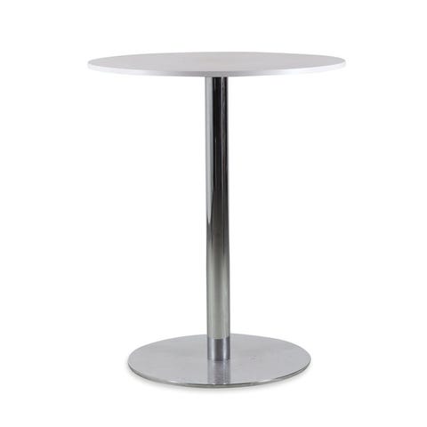Stilrent og funktionelt højbord i moderne design, ideelt til kontormiljøer, kantiner, caféområder eller som samlingspunkt i et kreativt arbejdsmiljø. Med en smal bordplade og integreret fodhvile er bordet velegnet til både stående og siddende brug med barstole.