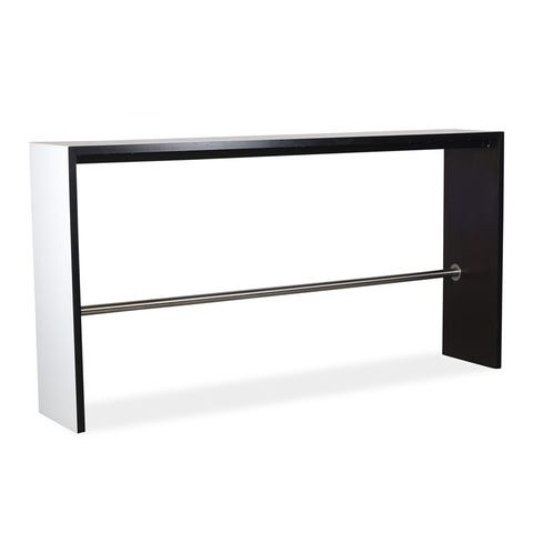 Højbord. Hvid laminat. Sort inderside. Forskudt fodhvile. 200x40x105cm