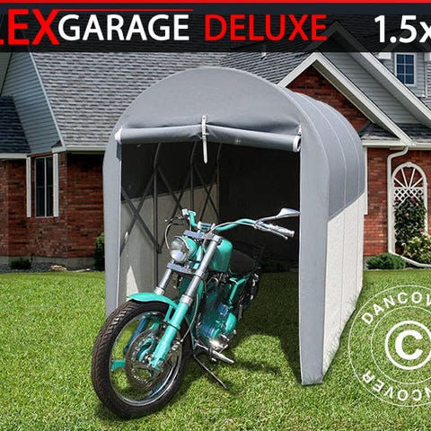 Foldetunnelgarage FleXgarage™ i elegant italiensk design og funktionalitet. Pas godt på din motorcykel med denne innovative, solide og fleksible foldetunnelgarage. Garagen beskytter dit køretøj mod støv, regn, UV-stråler, fugleklatter og tilfældige buler og skrammer. Konstruktionen af garagen reducerer kondens og er nem og hurtig at bruge.