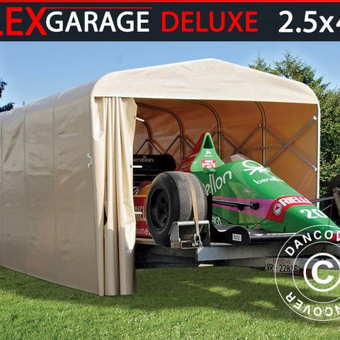 Foldetunnelgarage FleXgarage™ i et elegant italiensk design med høj funktionalitet. Pas godt på din campingvogn, autocamper eller mobilehome med denne innovative, solide og fleksible foldetunnelgarage. Garagen beskytter dit køretøj mod støv, regn, UV-stråler, fugleklatter og tilfældige buler og ridser. Garagens innovative og fleksible konstruktion gør den nem og hurtig at bruge til trods for den store størrelse.