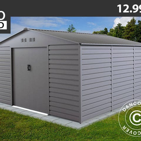 Skønt metal redskabsskur og haveskur med flot design. Ideelt haveskur til opbevaring af haveredskaber og haveudstyr. Haveskuret byder på god og sikker opbevaring. OBS! I områder med meget sne anbefaler vi vores ProShed® spær til forstærkning og forøget snelast. Skal dit ProShed® 12,99 m² stå i et område med kraftigt snefald, anbefaler vi 2 sæt med 4 spær i alt!