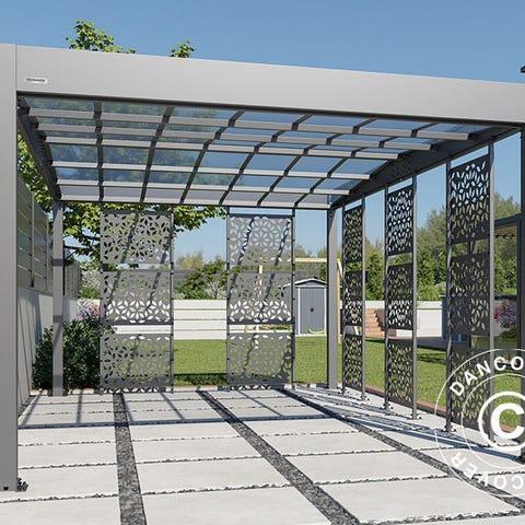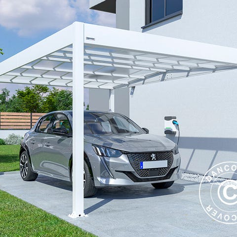 Elegant carport i et moderne design med 8 sidepaneler med det smukkeste mønster, som vil yde nem beskyttelse for din bil m.m. Denne solide og holdbare konstruktion beskytter mod regn, sne og UV-stråler, så din bil er klar, når du skal af sted. Designet passer smukt ind overalt, uanset om du bor i et moderne eller ældre hus. Størrelsen på carport giver plads til de fleste slags standardbiler. Der er 15 års begrænset garanti på den stærke aluminiumsramme!