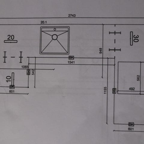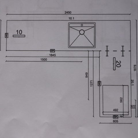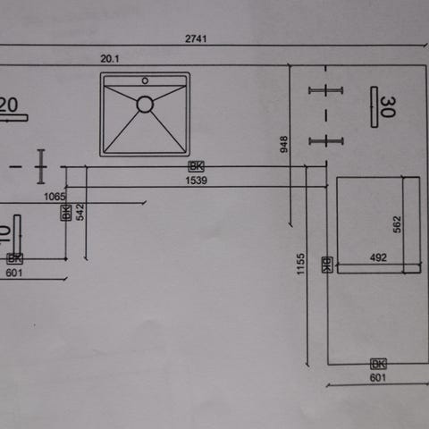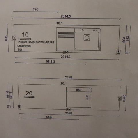 Bordplade med vask Laminat fv. Light Concrete 29mm 3065x600mm Med vask monteret underlimet - og hul 56x49cm lavet til kogesektion. Der er monteret alufolie på underside til beskyttelse af damp fra opvasker Bordpladen er NY - kommer direkte fra leverandør PFP