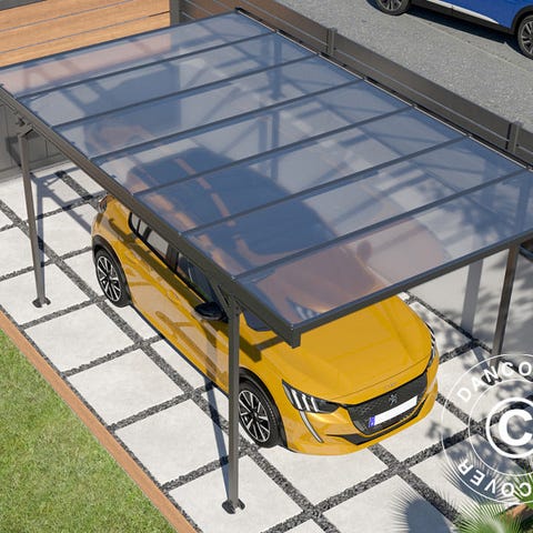 Elegant vægmonteret carport i et moderne design, som vil yde nem beskyttelse for din bil m.m. Denne solide og holdbare konstruktion beskytter mod regn, sne og UV-stråler, så din bil er klar, når du skal af sted. Designet passer smukt ind overalt, uanset om du bor i et moderne eller ældre hus. Størrelsen på carport giver plads til de fleste slags standardbiler. NB! Der er 15 års begrænset garanti på den stærke aluminiumsramme!