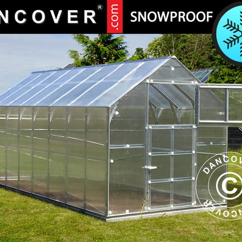 Ekstra stærkt og holdbart drivhus med 4 mm polycarbonatpaneler for ekstra styrke. Med dette elegante og vedligeholdelsesfrie drivhus kan du forlænge havesæsonen og nyde hjemmedyrkede frugter, grøntsager og blomster. Bemærk venligst den høje snelast på 200 kg/m², som gør dette drivhus velegnet til områder med meget sne. Det er muligt at bestille en eller flere forlængelser til dette drivhus!