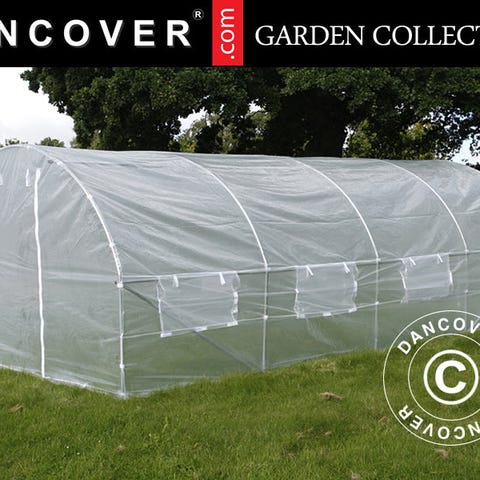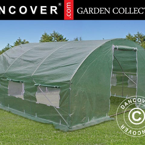 Polytunnel drivhus med perfekte vækstbetingelser for alle slags planter – både frugter, grøntsager og blomster. Transparent materiale, 3 vinduer med net på hver side og en dør i hver ende. Specielt udviklet dug sikrer optimale vækstbetingelser.