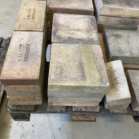 Ildfaste sten Bornholm, i diverse udgåede formater. Her er et mindre parti ildfaste sten i forskellige udgåede formater. Stenene har stået ude, så der er lidt misfarvning af alger og jord på dem. Vi har flere størrelser, bl.a. 30,5x30,5x6cm eller 29,5x15,0x4,5cm. (se hvad vi har under varianter). Prisen er pr. sten.