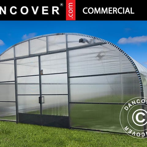 Professionel drivhustunnel til landmænd og gartnerier m.fl. Denne store, rummelige drivhustunnel skaber et effektivt sted til dyrkning af en lang række spiselige afgrøder og blomster. Coveret med dobbelt lag folie og den medfølgende blæser skaber en termoeffekt og dermed perfekt indeklima inde i drivhuset. Bemærk ståhøjden på 1,8 m langs siderne - det skaber endnu mere plads inde i drivhuset. Drivhuset har optimal lysgennemgang og vækstbetingelser, så du har mulighed for at frembringe perfekte grøntsager, frugt eller blomster derinde. Rammen på drivhuset består af galvaniserede rør dækket af en innovativ og holdbar drivhusfolie samt en blæser, som skaber det optimale indeklima. Den drivhusfolie, som vi anvender, isolerer ikke så godt i sig selv. Men med 2 lag folie og et luftfyldt termolag imellem, bliver konstruktionen isoleret, og nu kan drivhuset opnå en bedre temperatur, selv når det bliver koldt udenfor om natten. Det luftfyldte lag vil også gøre drivhuset mere stabilt i blæsevejr samt lade sne glider lettere af. Den elektriske blæser medfølger. De store dobbelte skydedøre sikrer nem adgang. Du kan fastgøre drivhuset på underlaget ved hjælp af jordankre, så du slipper for at bygge et dyrt og tidskrævende fundament. De professionelle drivhustunneller kommer fra en af Europas førende producenter med mange års erfaring i at skabe de bedste dri...