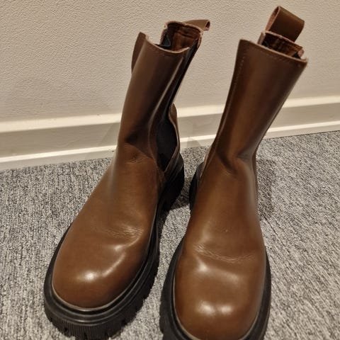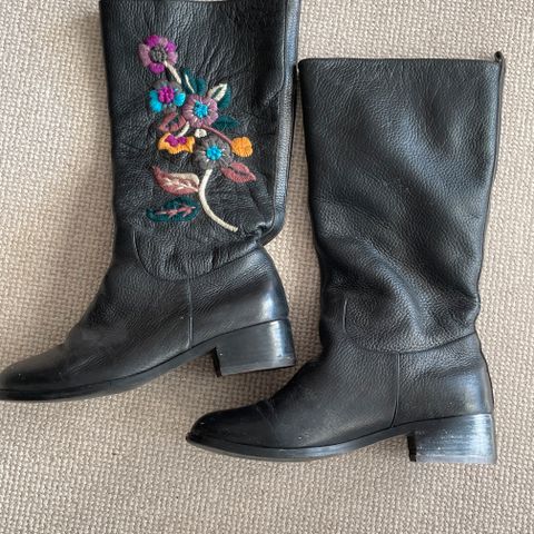 Som det ses på billedet, er den lavet af meget blødt læder med fine huller fra anklen og op. Den var dog for lille til mig. En meget behagelig støvle. Lavet i Portugal eller Spanien.