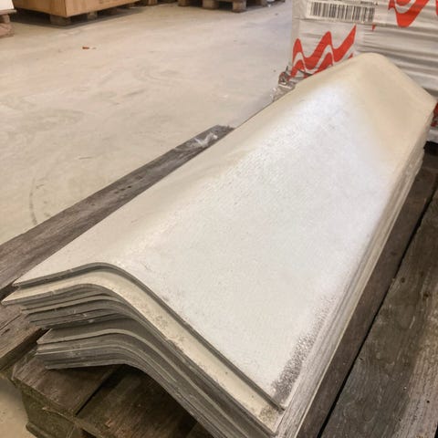 Cembritt vinkelrygning 37,5-40gr. Farve: Lys grå 240mm flig, montage længde på 1090mm. Mål: 24x24x109cm Pris pr stk. https://kingogenbrug.biz/vare/boelgeplade-ivarcem700t-1168x1220mm-patineret-2/
