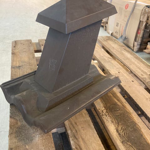 Udluftnings hætte tagsten 33x42cm 35-45gr. Mørk brun. Dækbredde 29,5cm. Uden ISO rør, kraver mm. Model Mjöbeck. Mål: 33x42x34cm https://partisalg.dk/?s=vinkelr&post_type=product