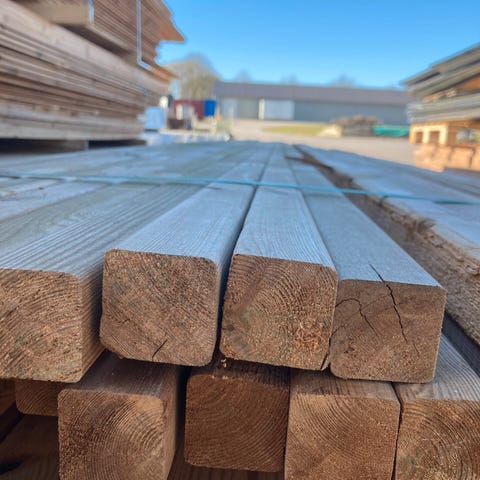 Thermotræ Fyr lægte 32x68mm. Paint cut på 4 sider, runde hjørner.