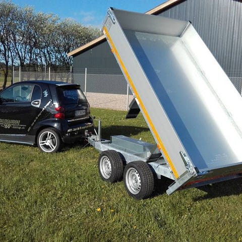 Erhvervsleasing fra kr. 527,- ex. moms. Udbetaling 0,00kr.ED2615-20-72-ETEduard 2615-20-72 med el-tipEn stærk og robust trailer med el-tip og en totalvægt på 2000 kg. ED2615-20-72-ET er en trailer med mange anvendelsesmuligheder og som vores andre ED2615 modeller er traileren kendetegnet vedStabil v-trækvangeFuldsvejset galvaniseret chassisSider i aluminiumIndvendige surringsøjerAftagelige hjørnestolperSider der kan lægges nedNæsehjulTrailer med el-tip Skal du primært køre med løs last er en trailer med tipfunktion et oplagt valg. Det kan være praktisk med en tip-trailer, hvis du fx skal køre med større mængder sten eller grus. Med en tip trailer er det nemt at få læsset lasten af uden det store arbejde. ED2615-20-72-ET har 3-leds cylinder og bagtip med elektrisk pumpe.Stort ladED2615-20-72 med el-tip har et indvendigt ladmål på 256x149 cm. Hjulene er placeret under ladet, så du har mulighed for at udnytte den fulde bredde. Alle hjørnestolper kan tages af og siderne kan lægges ned. Det giver en stor fleksibilitet, når du skal læsse traileren med grus, sand eller sten, da du kan bruge både bredden og længden. Siderne der er i aluminium er 30 cm høje og ladets læssehøjde er 70 cm.Robust og stærk trailerED2615-20-72-ET et godt valg, hvis du skal køre med tung last. Traileren kommer med Knott-aksel og en stålbund med en 15 mm finerplade under. Det er altså en stærk og robust trailer med en egenvægt på 612 kg og mulighed for at last helt op til 1388 kg.Husk nummerpladePrisen er ekskl. Nummerplade og nummerpladegebyr til 790 kr. (samme pris som hos SKAT). Vi har både EU- og almindelige nummerplader på lager.Ekstraudstyr til ED2615-20-72-ETEkstra siderFlad presenningHøj presenning, fås i flere højder